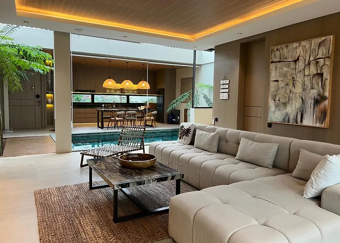 Aora Tirta Villa In Canggu距离拉古纳特别近,步行25分钟就可以到了。别墅靠近Odyssey Mvmt。 别墅提供跳水池,让旅客在留宿期间享受更多乐趣。